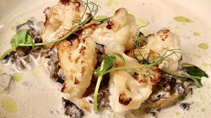 — салат «Деревенский» (сочные бакинские помидоры, свежие огурцы, красный лук и оливки, заправленные оливковым маслом с легкой ноткой базилика (подается с кубиками сыра фета, семенами подсолнечника и тыквы, украшен зеленым пармезаном), 300 г);