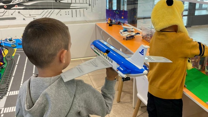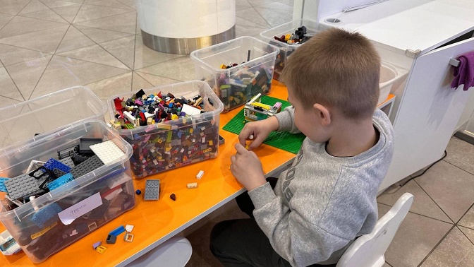 В игровой комнате, рассчитанной на пребывание детей в возрасте от 3 до 16 лет, есть целый город из конструктора! Тут можно управлять пассажирским и грузовым поездами, самолетами и машинами, строить здания и другие объекты, покатать жителей города в парке аттракционов. Большое количество игровых наборов и деталей не оставит ребят равнодушными. Дети находятся под присмотром администраторов, что позволяет родителям немного отдохнуть или прогуляться за покупками.